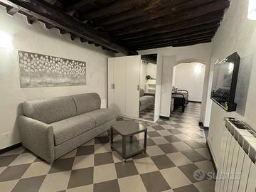 L'appartamento, di circa 55 mq si trova nel centro del paese a 150 metri dal mare in pianura. Si compone di due locali più il bagno con doccia, al piano terra di Vico Gazzie 12, non ha vista, affaccia su un piccolo cortile interno, è molto fresco e in posizione centrale. Ha 3 posti letto, un divano letto matrimoniale più un letto singolo, e uno spazioso bagno.