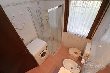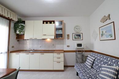 Si compone di: ingresso con soggiorno ed angolo cottura e divano letto, accesso ad un ampio terrazzo dotato di tavolo e sedie, disimpegno, bagno finestrato con box doccia, camera con letto matrimoniale e letto singolo a scomparsa.