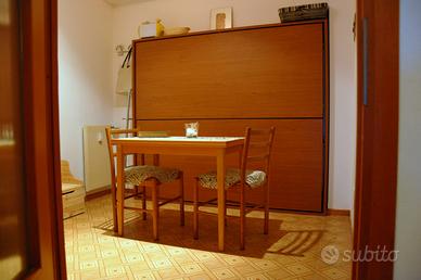 Bilocale in Aprica, località Magnolta, a pochissimi passi dagli impianti di sci e dalla piscina, composto da una piccola cucina con letto a castello a muro, una camera con letto matrimoniale, un bagno con box doccia, box auto privato + una piccola cantina. L'appartamento è in condominio, al piano rialzato, ed è accessibile senza dover salire le scale. Affittasi preferibilmente per tutta la stagione invernale oppure per periodi non inferiori a 30 giorni