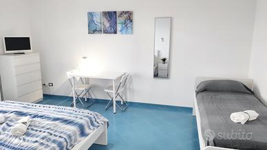 Bilocale di 55mq recentemente ristrutturato con un letto matrimoniale, un singolo e un divano a una piazza e mezza. L'appartamento è dotato di balcone, il terrazzo sulla sinistra in foto è dei vicini -.-'