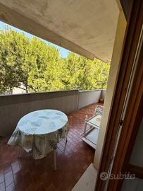 Zona piazza Tripoli. 5 min. a piedi dalla spiaggia (altezza bagni 46-49). Quarto piano (di 5) con ascensore. Soggiorno con divano letto matrimoniale, camera matrimoniale, cucinotto, bagno con doccia e lavatrice. Terrazza perimetrale abitabile. Posto auto privato nel giardino condominiale recintato.