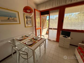Affittiamo grazioso bilocale disposto su due livelli zona "Principessa" da Giugno a Settembre. L'appartamento si trova al piano primo di un complesso residenziale immerso nel verde parco condominiale.