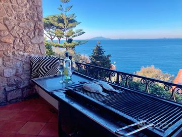 Appartamento in parco escludivo (Riviera di San Montano), camera letto, ampio living room, bagno con doccia idromassaggio, terrazzo panoramico sul golfo di Napoli, posto auto in box privato, aria condizionata, cucina superattrezzata, due tv con Netflix, Prime, Dazn e Disney, barbecue professionale.