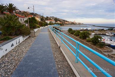 A Santo Stefano al Mare, Bandiera Blu, affitto, SOLO AD USO VACANZE, in Via Portarossa, bilocale recentemente ristrutturato, ubicato in zona molto tranquilla (lontano dall'Aurelia) e pianeggiante, tra il lungomare (a 50 mt.) e la pista ciclabile (a 30 mt.e lunga oltre 23 km.), comodo a tutti i servizi (negozi, ristoranti/pizzerie, banca/posta, giochi bimbi, noleggio bici etc.) senza utilizzo auto. L'alloggio, modernamente arredato, è composto da soggiorno con angolo cottura e divano, ampio bagno finestrato con doccia, camera con letto matrimoniale e letto a castello, grande balcone angolare con tende da sole elettrificate. E' dotato di lavatrice, lavastoviglie, frigo con freezer, TV (anche in camera), forno e forno a microonde, ferro e asse da stiro. Serramenti in alluminio con doppi vetri. Riscaldamento autonomo . Climatizzatore. Porta blindata. Presenti estintore e rilevatore gas+monossido di carbonio E' sito in piccolo condominio , al secondo piano con ascensore e parcheggio condominiale e sulla via. Max 4 persone. NO animali. Possibilità ricovero bici in locale comune CIN IT008056C2LYRIDQY4