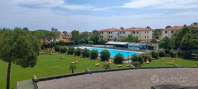 A 400 mt dalla spiaggia affittiamo bilocale al settimo piano con ascensore all'interno del Jet Residence.Wi-fi gratuito nella hall, parcheggio gratuito, campo da tennis, piscina con idromassaggio,animazione,area barbecue e giardini. L'appartamento ospita un massimo di 4 persone ed è composto da una zona giorno con cucina (nr.2 fornelli ad induzione), tavolo, tv e divano letto matrimoniale oltre ad una camera matrimoniale e bagno con box doccia. Completamente ristrutturato lo scorso anno.E' dotato di condizionatore, frigorifero e congelatore oltre ad un fornetto ventilato.Spazioso balcone dove potrete mangiar fuori e godervi la splendida vista sulla piscina e sul parco.Non sono ammessi animali domestici.Disponibile a giugno e settembre. CIN IT043042C222ELNIB7 Prezzi settimanali a partire da 400 euro in bassa stagione.Per ulteriori informazioni chiamare Alessia