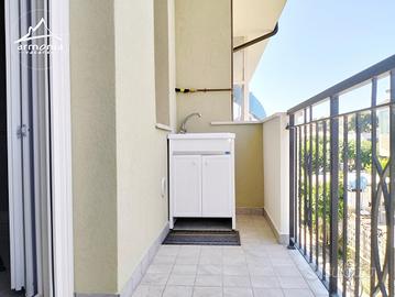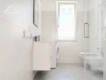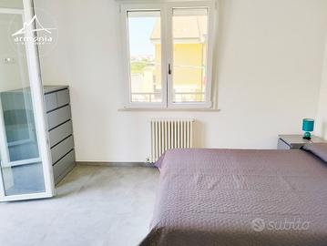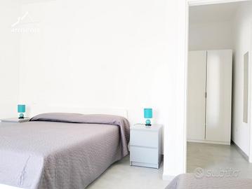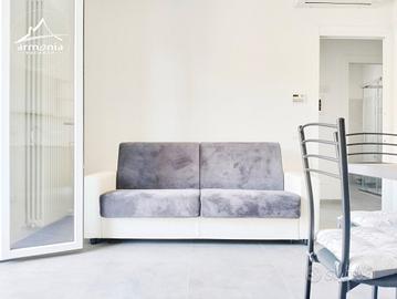 La composizione dei locali è la seguente: ingresso, soggiorno con cucina a vista, area pranzo e comodo divano letto (accesso a balcone); disimpegno con armadio; camera con letto matrimoniale e un letto singolo (accesso al balcone); bagno con box doccia e sanitari completi di bidet.