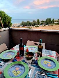 Suddiviso in un salotto con angolo cottura, un bagno, una stanza matrimoniale ed uno splendido balcone dotato di tavolo, sedie e tenda parasole per mangiare fuori