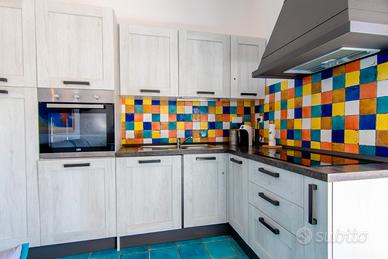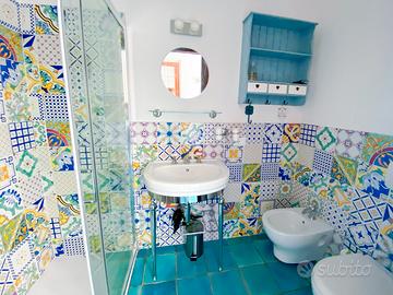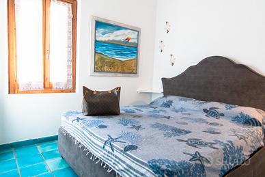 Al primo piano, il bilocale di circa 40 mq è arredato con cura per offrire il massimo comfort. Include una camera matrimoniale e un soggiorno con divano letto matrimoniale e angolo cottura attrezzato. Dalla zona giorno si accede alla terrazza vista mare. Il bagno è dotato di doccia. Completano i servizi: climatizzazione, TV, cassaforte, lavatrice, forno elettrico, piano a induzione, Wi-Fi e posto auto convenzionato.