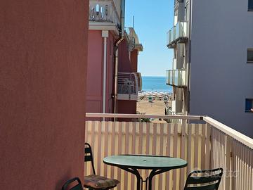 AFFITTO bilocale 3+2 posti letto, situato al 3 ed ultimo piano con ampio terrazzo con vista mare, a due passi dal centro storico e accesso diretto alla spiaggia di Levante. Composto da disimpegno, ampio soggiorno con angolo cottura, divano letto matrimoniale, Tv, frigo, forno microonde; camera con letto matrimoniale e poltrona a letto a fianco, bagno finestrato con box doccia e lavatrice. Dotato di climatizzatore, ascensore e posto auto coperto. Il prezzo comprende il posto spiaggia (un ombrellone e due lettini). Nella richiesta si prega di specificare il numero delle persone. Si affitta da sabato a sabato. La partenza è prevista entro le ore 9,30 e l'arrivo verso le ore 12.00 circa.