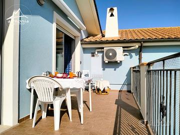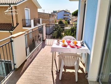 Curato appartamento posto al secondo piano di una palazzina situata fronte mare. L'alloggio è arredato in modo accogliente e dispone di uno splendido terrazzo con vista mare frontale.