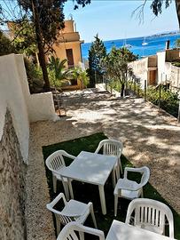 Appartamento Conchiglia , con vista sul giardino, camera da letto e angolo cottura per due persone.