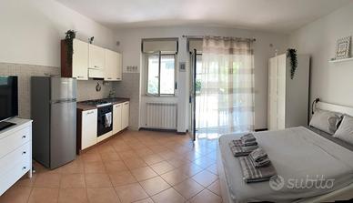 Libero da Maggio a Settembre. Ad agosto è disponibile solo dal 1 all'8. In zona Latina mare (Borgo Sabotino-Foce Verde) si affitta delizioso appartamento monolocale di circa 40 mq situato al piano terra e con giardino di circa 40 mq, all'interno di un complesso di palazzine di recente costruzione. L'appartamento è composto da un'unica stanza con angolo cottura e letto matrimoniale oltre al bagno con doccia. Presente aria condizionata. Ampio parcheggio esterno gratuito Si trova a 800 metri dal mare, circa 600 da supermercato/bar/servizi. Giugno: 300? settimanali Luglio: 350? settimanali Agosto: 400? settimanali Settembre: 300? settimanali N.B. Tutte le tariffe sono da intendersi esclusi i consumi, che vengono calcolati mediante lettura dei contatori (mediamente ?35 a settimana) Animali educati sono i benvenuti con extra di pulizie finali di 30€ Richiesto deposito cauzionale di ?50 in contanti, che verrà restituito al momento del check out. Biancheria non inclusa.