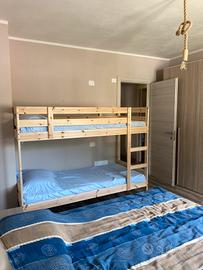 Appartamento Bilocale luminoso arredato completamente nuovo di recente ristrutturazione. Libero prima di Natale dal 18.12 al 28.12 Libero da Capodanno dal 02.01 al 07.01 Situato al primo piano di palazzina indipendente, con vista montagna e parcheggio pubblico presente nella intendiate vicinanze. Arredamento nuovo composto da cucina soggiorno con divano letto e TV 32 pollici, disimpegno, bagno con doccia e camera da letto con letto matrimoniale e letto a castello. Impianti nuovi (riscaldamento a pavimento con caldaia autonoma e termostati in ogni locale, tapparelle motorizzate, lampade Led). Prezzo per singola settimana di 600 Euro a settimana (escluso settimane di Natale, Ultimo, Agosto e di settimane con eventi nel week-end a 750 Euro a settimana), Prezzo escluso di spese energia elettrica, gas e acqua per settimana. Mente per stagione invernale 4 mesi da dicembre a Aprile compresi prezzo 3.500 Euro escluso tasse, contratto, lune e gas. Escluso sempre biancheria lenzuola e pulizie finali al costo di 50 Euro. Ottima posizione a pochi passi dal centro con vista eccezionale.