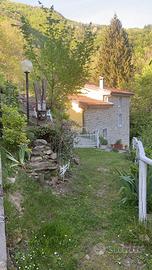 Casa vacanza immersa nel verde di circa 150 mq disposta su tre livelli.Distante 50 metri dai campi da calcetto/tennis 1 km dal fiume, 500 metri dalla piazza del paese.Raggiungibili a piedi la macelleria, la farmacia ed il minimarket .Due ingressi di cui uno in resede privata. Uso esclusivo spazio verde recintato dotato di barbecue, parcheggio privato e tavolo per picnic. La casa dispone di termocamino a legna Stufa a vista riscaldamento gpl lavatrice lavastoviglie forno microonde ferro da stiro