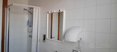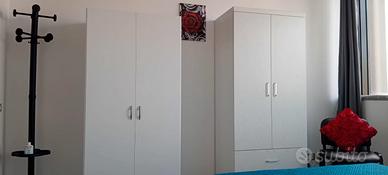 Si compone di: - ampia e luminosa camera da letto con tende oscuranti, condizionatore, n. 2 armadietti, scrivania in legno con cassetti e sedia ideale per chi dovesse svolgere attività lavorative, n. 1 sedia in pelle, possibilità di terzo letto per bambini di età compresa tra i 3/14 anni (opzione extra a pagamento); - zona ristoro dotata di frigo + freezer, tavolo + sedie, sedia in pelle, lavabo in acciaio, termoventilatore portatile, bollitore, fornetto elettrico, tazze, tazzine, bicchieri, piatti, posate; - bagno completo di doccia, water, bidet, asciugamani elettrico, phon. La struttura fornisce lenzuola, cuscini, coperte, accappatoi, asciugamani, sapone, bagnoschiuma compresi nel prezzo. Qualora il soggiorno dovesse superare i 3/4 gg. sia il servizio di cambio biancheria che di pulizia appartamento diventano a pagamento così come l'eventuale terzo letto aggiuntivo per bambini di età compresa tra i 3/14 anni.