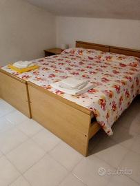 Disposta su tre livelli: nell'ingresso principale è presente il citofono, aprendo il cancello in legno si trova sul lato sinistro un comodo garage e una doccia esterna, sul lato destro le scale per l'accesso all'interno della casa e per la parte esterna superiore casa. Il primo piano della casa è composto da: soggiorno con vista sulla spiaggia e zona pranzo ( nel soggiorno si trova il climatizzatore), cucina(frigo, freezer, forno a micronde,lavastoviglie, dispensa),bagno (bidet, wc, lavabo, non c'è la doccia),stanza con una anticamera dove è presente una lavatrice ed un grande lavabo,sgabuzzino comodo e capiente. Attraverso le scale, rivestite di un bellissimo granito e un passamano in legno, si accede al piano rialzato, dove si trova una camera matrimoniale. Piano superiore 1 camera matrimoniale, 2 camere con 2 letti singoli, bagno con doccia. Le camere da letto ed il soggiorno sono dotate di climatizzatore. All'esterno,sul retro della casa si trova la doccia esterna (acqua riscaldata dal pannello solare) e barbeque, terrazzo con tavolo e sedie, anche vicino al garage si trova una doccia esterna ( acqua fredda) nel prezzo sono comprese le spese: acqua, luce, gas, lenzuola ed asciugamani, 150 euro pulizie finali, sconti praticati a seconda della durata della locazione, disponibilità e prezzi a settimana: aprile maggio euro 800, 5-12 giugno e 27 giugno 3 luglio 1500, 2-8 agosto e dopo il 23 agosto 2000, prime 2 di settembre 1200, ultime 2 1000, ottobre 800