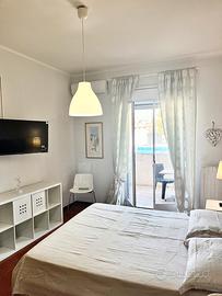 L'intero appartamento è dotato di posateria, stoviglie ed elettrodomestici. Salotto e cucina di design stile moderno. Tre camere matrimoniali con vista e balconcino + i rispettivi armadi e condizionatori autonomi. Due bagni spaziosi e tante finestre che rendono l'appartamento particolarmente luminoso e accogliente. Posto auto.