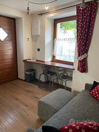 con armadio e divano che si trasforma per la notte in vero letto matrimoniale (no divano-letto) con piccolo cucinino attrezzato a scomparsa. Ristrutturato a nuovo con riscaldamento a pavimento.