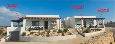 La Camera matrimoniale con bagno annesso ed ingresso indipendente ha come dotazione aria condizionata, Smart TV, Frigo da hotel con piccola ghiacciaia, Asciugacapelli e Veranda privata e un tavolino con due poltroncine. L'angolo cottura dotato di stoviglie e tutto il necessario per cucinare è esterno e situato nell'ara Barbecue ma in veranda è presente un tavolo con sedie dove potrete pranzare/cenare in tutta tranquillità. Il prezzo comprende Pulizia Finale, Utenze, primo set di lenzuola e salviette (viso, doccia, intima) con cambio settimanale. La struttura si trova sopra Cala Pisana che è anche il primo accesso al mare raggiungibile a piedi a 300m. È a meno di 500m dal supermercato più grande dell'isola e a circa 1km da via Roma che è il centro di Lampedusa lato opposto al mare.