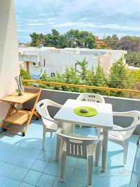L'appartamento é situato a circa 300 metri dal mare come si può vedere in foto. La casa é al secondo piano ed é munita di ascensore e posto auto recintato privato.