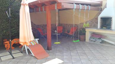 Fittasi nei mesi di giugno, luglio, agosto e settembre, villetta climatizzata indipendente in Campomarino - Mirante a circa 300 m. dalla spiaggia indicata dalla foto (famose dune di Campomarino ) , composta da ingresso/soggiorno con divano letto matrimoniale ed angolo cottura con cucina componibile, 2 camere da letto matrimoniali con materassi memory di cui una più grande con possibilità di aggiungere un lettino , bagno completo di doccia e lavatrice, ampio giardino video-sorvegliato di circa 200 mq. (con gazebo in legno di circa 20 mq) completo di doccia esterna con acqua calda e lavabo grande , terrazza praticabile di circa 60 mq con vista panoramica, barbecue professionale di m. 2,5 (con legna di ulivo a disposizione gratis). OGNUNO dei tre vani è completo di condizionatore, zanzariere a scomparsa, tapparelle elettriche coibentate in alluminio, infissi in pvc con chiusura ermetica per isolamento termico, ventilatore a soffitto con telecomando a 3 velocità, tv color a led, antenna satellitare,. BIANCHERIA tutta nuova e compresa nel prezzo (lenzuola, asciugamani, accappatoi, tovaglie, ecc.). GIARDINO ARREDATO con: maxi ombrelloni, sdraio relax, lettini prendisole, tavoli e sedie per esterni, dondolo a 3 posti, amaca classica e amaca a sedia appesa ad un albero, fioriere , giochi vari per bambini fino a 12 anni e per adulti con tappeto elastico per gioco e fitness - diametro 3 metri e peso fino a 120 Kg. TUTTO PER IL MARE GRATIS (lettini, sdraio, ombrelloni, lettino spiaggia/porta oggetti, frigo portatile, ecc.) N. 3 bici a disposizioni per passeggiate. Arredo interno tutto nuovo.