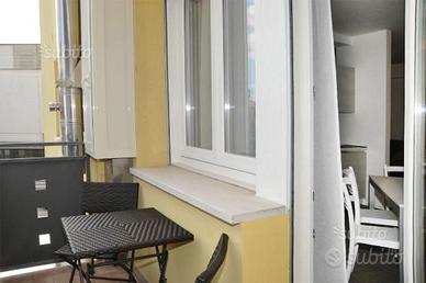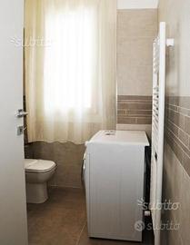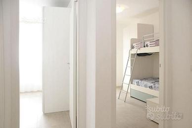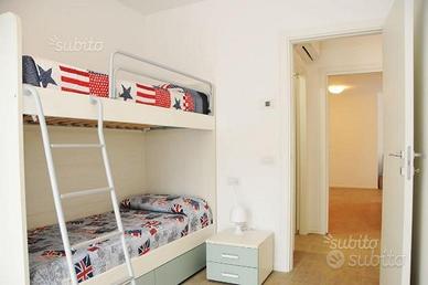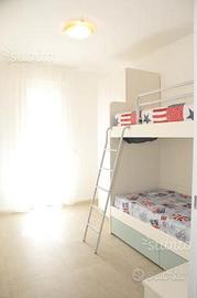 Trivano centralissimo, 400 mt dalla spiaggia piano primo con ascensore, si compone di: ampia zona giorno con divano letto matrimoniale angolo cottura e terrazzo, disimpegno, ripostiglio, bagno finestrato con box doccia, secondo bagno finestrato con box doccia 140x80, spaziosa camera matrimoniale , camera doppia, entrambe con accesso ad un secondo terrazzo.