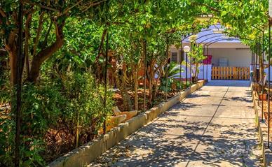 Dispone di 2 camere da letto,cucina abitabile ,bagno con doccia e lavatrice e veranda esterna su giardino con cucina,doccia e barbecue.(6posti letto)