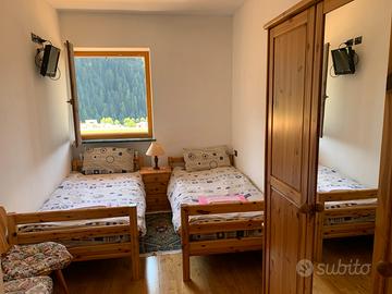 Appartamento in uso fino a 4 persone/baby 2300 // in uso fino 6 persone € 2700,eventuale persona in più euro 200 ogni persona/baby in più Abbiamo a disposizione a Predazzo un appartamento per 4 / 6 persone max 8, con 2 camere da letto 1 ,bagno soggiorno ben accessoriato con: angolo cottura: lavastoviglie, frigo, congelatore ,forno Balcone su due lati della casa,giardino privato grande in comunione con pin-pong Grande BAITA grill - barbecue - forno a legna per pizza cuoce 3 pizze insieme Tavolone con panche per 25 persone in vista piazza e Lagorai prenotatile per CAPODANNO. Posto auto privato. A 300 metri dalla Piazza di Predazzo - Supermercato - Skibus PER IL MOMENTO POSSIBILITà DI AVERE DUE APPARTAMENTI COME QUELLO SOPRA DESCRITTO COMUNICANTI CON 4 CAMERE DA LETTO,2 BAGNI,2 SOGGIORNI CON ANGOLO COTTURA IL PREZZO è IL DOPPIO !!!!