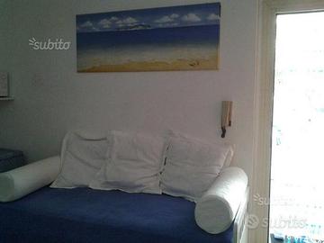 Bilocale 3 persone in zona Torre, nell'arredo molto caratteristico che richiama l'ambiente marino fresco ed accogliente. Piano terra, con esterno attrezzato per mangiare all'aperto sotto l'ombra di due palme, ingresso indipendente, in un residence di 4 case, molto tranquillo. Internamente composto da un soggiorno con angolo cucina divano letto una stanza matrimoniale con ampio armadio e bagno con servizi doccia. A 5 minuti da cala della Grotta 10 per il porto. Per maggiori info chiamare 3476372741 o anche tramite Whatsapp. Possibilità di condizionatore o pompa di calore. Non si fornisce biancheria.