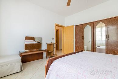 2 camere da letto con ventilatore a soffitto e clima presente in soggiorno, dal quale si accede alla terrazza scoperta dove vi è la lavanderia.