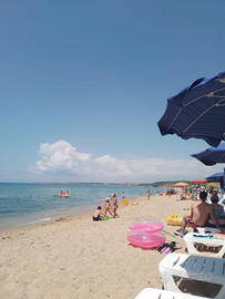 sabbia finissima di colore ambrato ampissima e lunghissima denominata "la spiaggia dei gigli" con fondale basso, ottimo anche per famiglie con bambini.