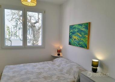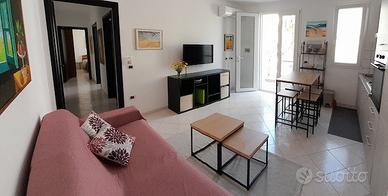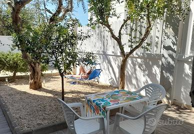 La casa è ideale fino a 4 persone ed è composta da: 2 camere con letto matrimoniale, bagno con doccia, bagnetto lavabo e wc, soggiorno/cucina attrezzata e divano letto. Giardino privato con tavoli, ombrelllone, box doccia e lavatoio. Condizionatori caldo/freddo in una camera e in soggiorno.