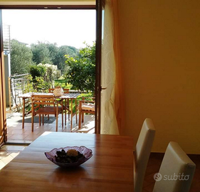 Disponibilità: dal 30 agosto Appartamento con giardino, a meno di 10 minuti a piedi dal mare. La casa è composta da un ampio soggiorno luminoso, angolo cottura attrezzato anche con forno, microonde, televisione e divano letto matrimoniale. Un disimpegno separa la zona giorno dalla zona notte composta da una camera matrimoniale dotata di zanzariera e con possibilità di lettino per bambini piccoli. Ampio bagno con cabina doccia. Avrete a disposizione un giardino privato con terrazzo coperto attrezzato per piacevoli pranzi o cene all'aperto. Spazio lavanderia con lavatrice e lavatoio. Spazio bici nel sottoscala. Soggiornerete in una casa di Classe Energetica A+ con rinfrescamento e riscaldamento a pavimento radiante. Ingresso indipendente. Quartiere residenziale tranquillo con parcheggio riservato! Totale 4 posti letto. Adatto per famiglie anche con bambini piccoli.