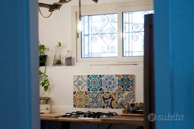 Quattro posti letto (1 matrimoniale e 2 letti singoli) per un piano terra con spazio esterno e parcheggio privato. A soli 2 minuti a piedi dalla costa rocciosa dell'Addaura.