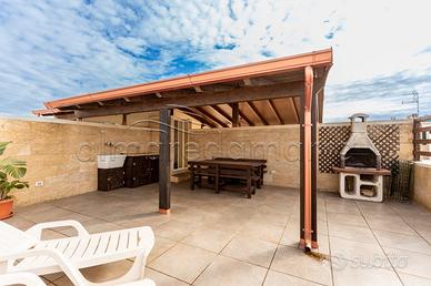 Le camere sono arredate con gusto e dotate di tutto il necessario per garantire un soggiorno confortevole e rilassante. La terrazza esclusiva raggiungibile con una scala a chiocciola, con solarium, ha anche una doccia, è attrezzata con mobili da giardino e sdraio/chaise-longue; rappresenta il luogo ideale per trascorrere momenti di relax baciati dal sole. La particolarità di questa soluzione è il porticato esterno sul terrazzo che rappresenta il luogo ideale per trascorrere dei bei momenti, il tutto arricchito dalla presenza di un barbecue comodo per le serate estive.