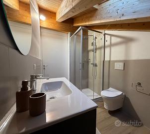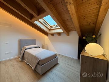 Rilassati in questo elegante e tranquillo appartamento situato in un prestigioso residence con posto auto privato, nuovo a 600 m dal centro, comodo ai servizi principali: ospedale, stazione, bus, scuole e supermercati. L'appartamento è dotato di aria condizionata, lavatrice, cucina completa e l'utilizzo esclusivo di due bici. Entrando troviamo soggiorno cucina e un bagno completo, al primo piano una camera open space con letto matrimoniale e singolo, divisi da un armadio e un bagno completo.
