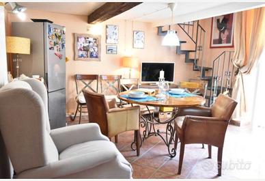 L'appartamento presenta un ampia zona living, una zona pranzo separata con cucina attrezzata e un balcone per poter mangiare all'aperto, camera da letto nel soppalco e bagno con ampia doccia.