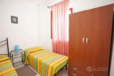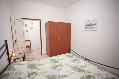 Appartamento situato in località Lacona al piano terra di un casale a due piani di fine '800 immerso in una vegetazione rigogliosa, distante circa 700 metri dalla spiaggia di Lacona, una delle più grandi dell'isola. Trilocale 4 posti letto (55 mq) Si compone da soggiorno-cucina, camera matrimoniale, camera con 2 letti singoli unibili e bagno grande con box doccia. Completano la proprietà una veranda esterna con possibilità di mangiare fuori, fontana e giardinetto. Note Importanti: - età minima per fare il check-in anni 21 - check-in dalle 16.00 alle 19.30 e check-out entro le 09.00; per check-in dopo le ore 20.00 va pagato un supplemento di € 50,00 - animali non ammessi - cauzione (obbligatoria): 150,00 euro; rimborsata a fine soggiorno dopo aver visionato lo stato dell'immobile (nel caso in cui venga pagata in contanti non sarà restituita prima delle ore 15.00) - biancheria da letto e da bagno: 20,00 euro per persona (da richiedere al momento della prenotazione); non prenotabile sul posto - nello spazio esterno dell'appartamento o nelle aree comuni della casa è vietato il parcheggio ai veicoli esterni di ospiti non registrati