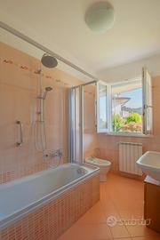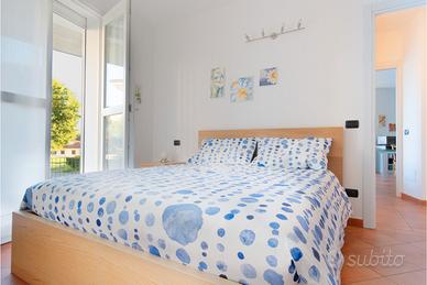 Si compone di un'ampia sala con angolo cottura e divano letto matrimoniale, angolo smart-working, una stanza matrimoniale, una stanza con due letti singoli, un bagno, una lavanderia, zona esterna con giardino e ingresso privato.