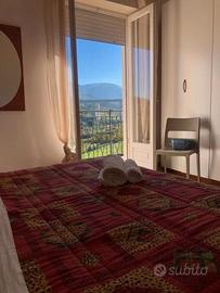 La zona notte comprende una camera matrimoniale e una stanzetta, entrambe con balcone affacciato sulle montagne. La luce naturale che filtra dalle finestre dona calore e armonia agli spazi, rendendo l'ambiente riservato e tranquillo.