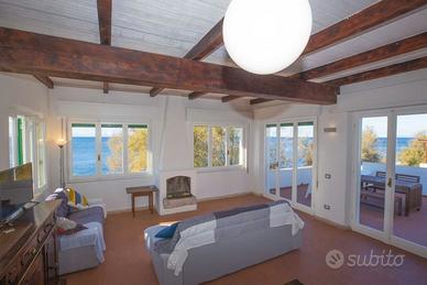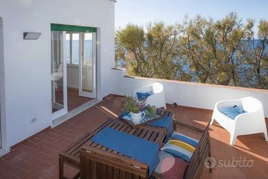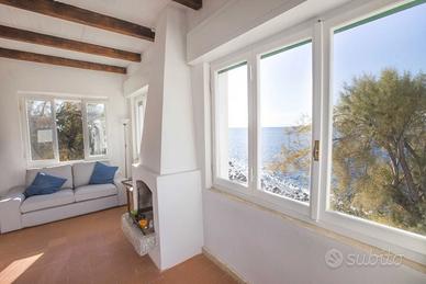 Villa (12 posti letto) La struttura di 200 mq è disposta su due piani. Il piano terra è composto da due camere matrimaniali vista mare, una camera matrimoniale senza vista mare, una camera con due letti a castello e un bagno con doccia. Da una scala interna si accede al piano superiore, dove è presente un salone con grandi vetrate vista mare su tre lati, un ampio terrazzo attrezzato per mangiare e riposare all'aperto, al quale si può accedere con scala esterna indipendente. Inoltre possiamo trovare un'altra camera matrimoniale, un bagno con doccia e una cucina. Note importanti: - animali ammessi Informazioni sulla posizione: - sul mare, vicinissima al centro di Pomonte; a 30 metri dalla spiaggia dell'Ogliera Tipo arredamento: - semplice ma elegante; Servizi interni all'appartamento: - frigorifero con freezer; lavatrice; WiFi; forno elettrico; lavastoviglie; TV; biancheria bagno e letto compresa nel prezzo; Servizi esterni all'appartamento: - due Posti auto; terrazzo sul mare; doccia esterna; barbecue; Distanze: - da Portoferraio: 28,4 km; da Porto Azzurro: 32,3 km; da Capoliveri: 34,3 km; da Marciana Marina: 27 km; da Rio Marina: 42,4 km; dall'ospedale di Portoferraio: 28 km; dal porto di Portoferraio: 28,4 km Distanze dalle spiagge: - dalla spiaggia del relitto 30 m; dalla spiaggia di Fetovaia: 4,8 km; dalla spiaggia di Seccheto: 6,5 km; dalla spiaggia di Cavoli: circa 8 km; dalla spiaggia di Sant'Andrea: 11 km; dalla spiaggia di Marina di Campo: 13,4 km