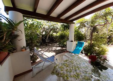 E' circondata da un giardino ed ha un terrazzo coperto attrezzato con barbecue, sedie sdraio, amaca e tavolo con sedie. Posto auto privato. Vi sono a disposizione sanificanti e disinfettanti.