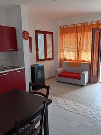 Appartamento confortevole con veranda esterna e barbecue, parcheggio privato e dotata di tutto. In zona alta del paese a 5 minuti d'auto per porto pino