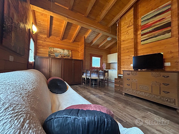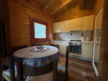 Lo chalet in legno è disponibile per l'affitto, ideale per un soggiorno rilassante. L'open space interno offre ampio spazio e comfort, perfetto per ogni esigenza. Un'area relax è situata nel retro, completa di zona barbecue per piacevoli serate. La struttura è completamente arredata, garantendo un'esperienza senza pensieri. Non perdete l'occasione di prenotare questo splendido chalet per le vostre prossime vacanze.