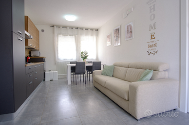 cucina con soggiorno e divano letto matrimoniale