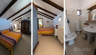 Affittasi, per il periodo estivo, un appartamento di 60 metri quadri, composto da un ampio open space con cucina, tavolo da pranzo, divano e un suggestivo camino in cui è alloggiato il frigorifero; sulla destra si entra nella zona dedicata alla camera doppia con bagno dedicato, mentre a sinistra si trova la camera padronale con bagno in camera. L'appartamento è anche dotato di una verandina privata, di TV, internet, aria condizionata, macchinetta del caffè, frigo e congelatore. Inoltre, è fornito dei corredi per il bagno e per il solo pernottamento, nonché tutto l'occorrente per provvedere da soli ai pasti.