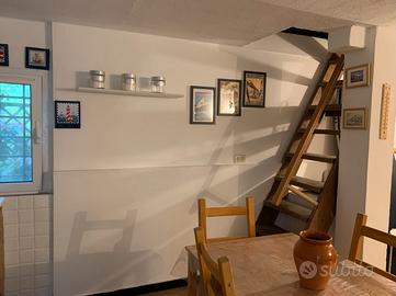 Piano terra: angolo cottura - soggiorno con divano letto 2p. Piano superiore : camera matrimoniale più letto singolo, bagno con doccia.