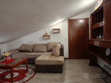 L'appartamento è mansardato e ha l'aria condizionata, lavatrice e asciugatrice.
