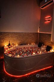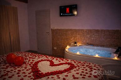 La vasca idromassaggio in camera, con cromoterapia, ozonoterapia e acqua a cascata, trasforma ogni bagno in un rituale di puro relax. Abbassate le luci, immergetevi nell'acqua calda e brindate con una bottiglia di prosecco: il tempo si ferma, restano solo le emozioni.