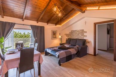 - un'area soggiorno con un divano letto matrimoniale, TV, tavolo da pranzo e una cucina completamente attrezzata con forno, frigo-congelatore, microonde, lavastoviglie, piano cottura a induzione, macchina da caffè espresso, tostapane.